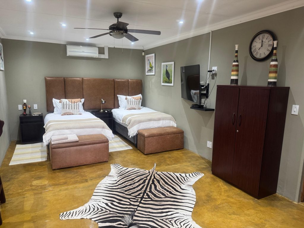 Our Family Suite is tastefully decorated with an African theme. This spacious suite comprising of two separate rooms, a kitchenette and bathroom measures 65sq meters excluding under roof veranda measuring 26 sq meters.